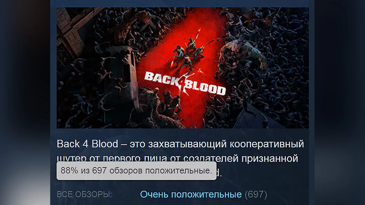 На момент написания новости Back 4 Blood имеет 88% положительных отзывов в Steam. Новинку хвалят за интересный сюжет, приличную графику, широкий арсенал оружия с богатыми возможностями кастомизации и прокачки, а также за отличную оптимизацию — игра хорошо работает даже на бюджетных PC.