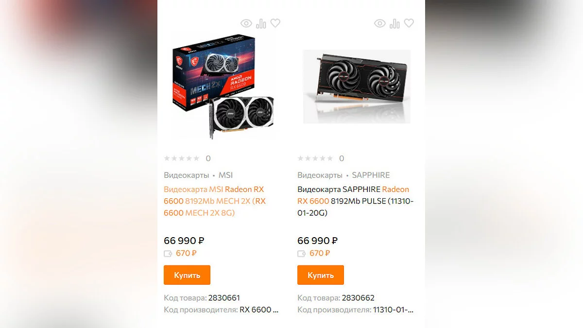 В России перекупщики уже продают видеокарты Radeon RX 6600. Цены не радуют
