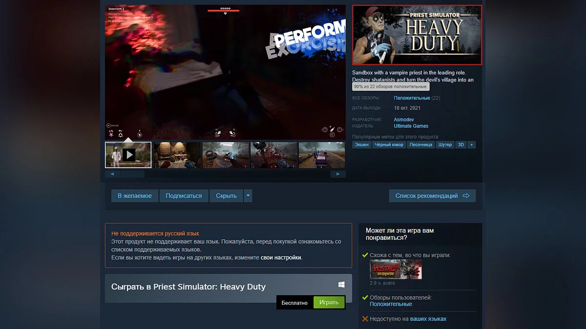 Добавить Priest Simulator: Heavy Duty в свою библиотеку Steam можно здесь.