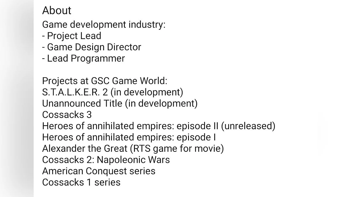 Помимо S.T.A.L.K.E.R. 2, GSC Game World работает над еще одной игрой. Неанонсированный проект указан в профиле главы студии Евгения Григоровича.