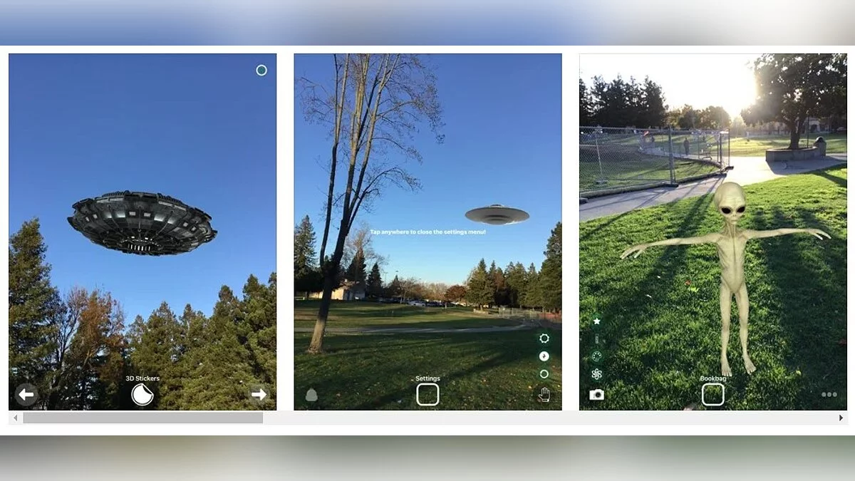 - Augmented Reality UFO Stickers — приложение добавляет НЛО и инопланетян, созданных по технологии дополненной реальности (загрузить бесплатно).