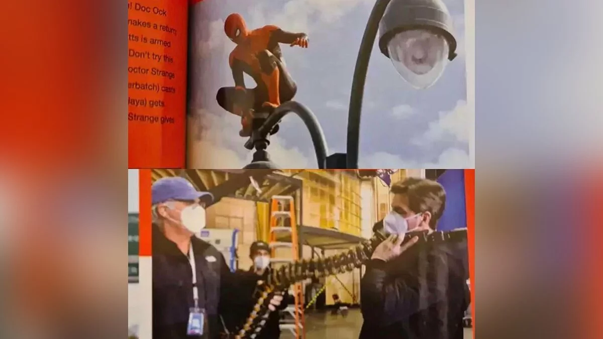 Слитые страницы журнала появились на Reddit. На одном из кадров Доктор Осьминог опутал Питера Паркера и собирается его прикончить. Любопытно, что на съемках также использовали настоящие механические щупальца — их можно заметить на другой фотографии.