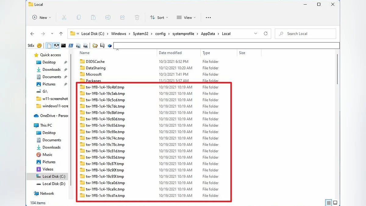 Эта проблема проявлялась с 2019 года в Windows 10. Она вызывает появление уймы каталогов в C: / Windows / System32 / config / systemprofile / AppData / Local. Причём все они имеют метку tmp, но при этом не содержат в себе ни одного файла.