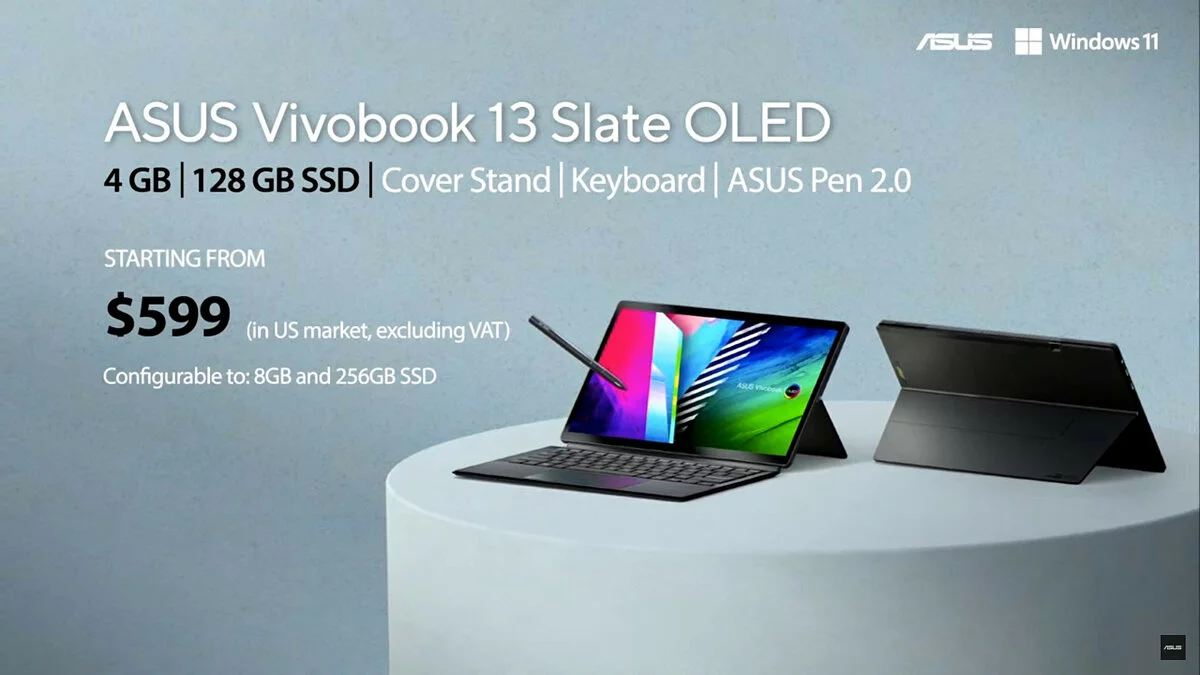 В рамках онлайн-презентации #WOWTHEWORLD компания ASUS представила ноутбук-трансформер Vivobook 13 Slate OLED с сенсорным дисплеем диагональю 13,3 дюйма и отсоединяемой клавиатурой. Новинка работает на системе Windows 11. Производитель позиционирует Vivobook 13 Slate OLED как многофункциональное устройство — компактный лэптоп, планшет и портативный OLED-телевизор. В ноутбуке установлен четырехъядерный процессор Intel с частотой до 3,3 ГГц. Толщина устройства 7,9 мм, вес составляет 785 грамм (без клавиатуры).