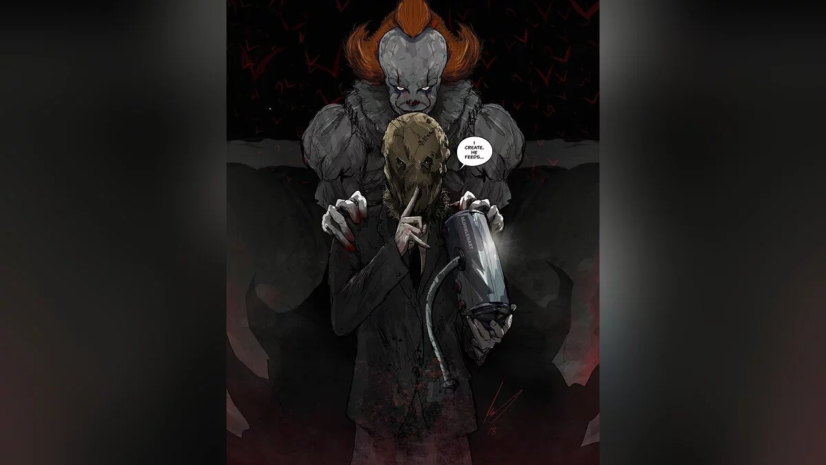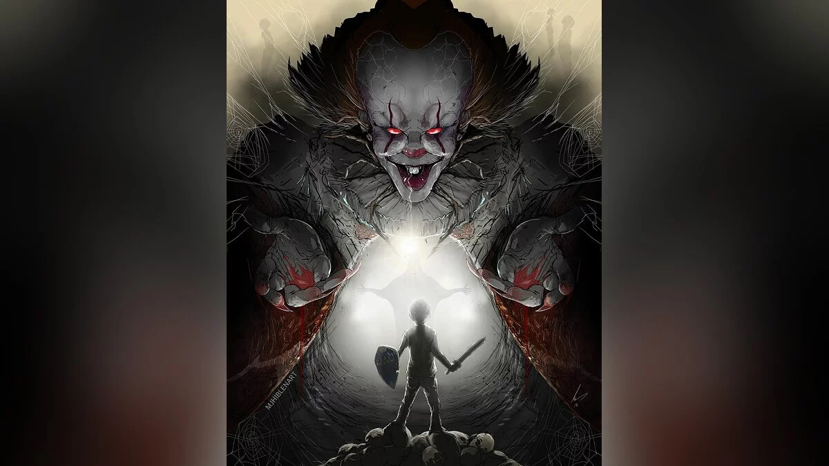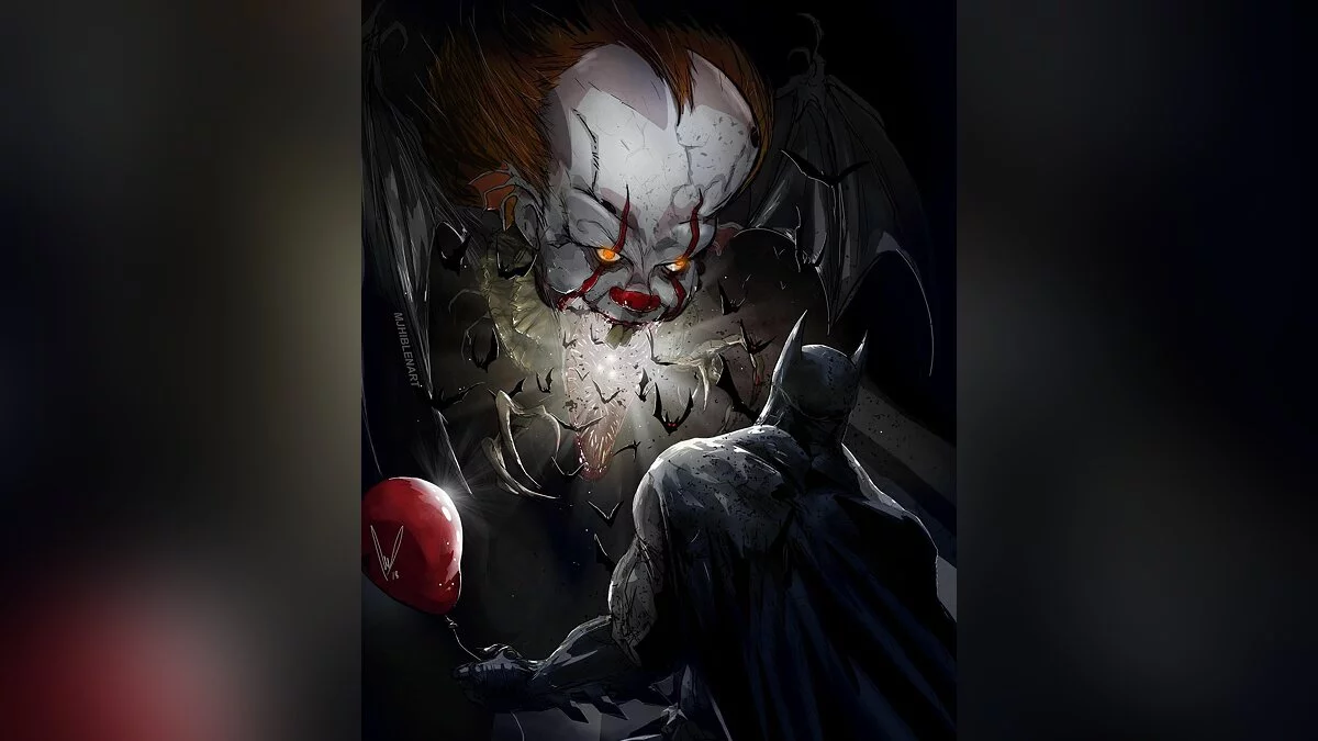 Художник с ником mjhiblenart нарисовал (признано в России экстремистской организацией) новые арты, на одном из которых показал, что если бы Бэтмен вдруг столкнулся с Пеннивайзом из фильма ужасов «Оно».