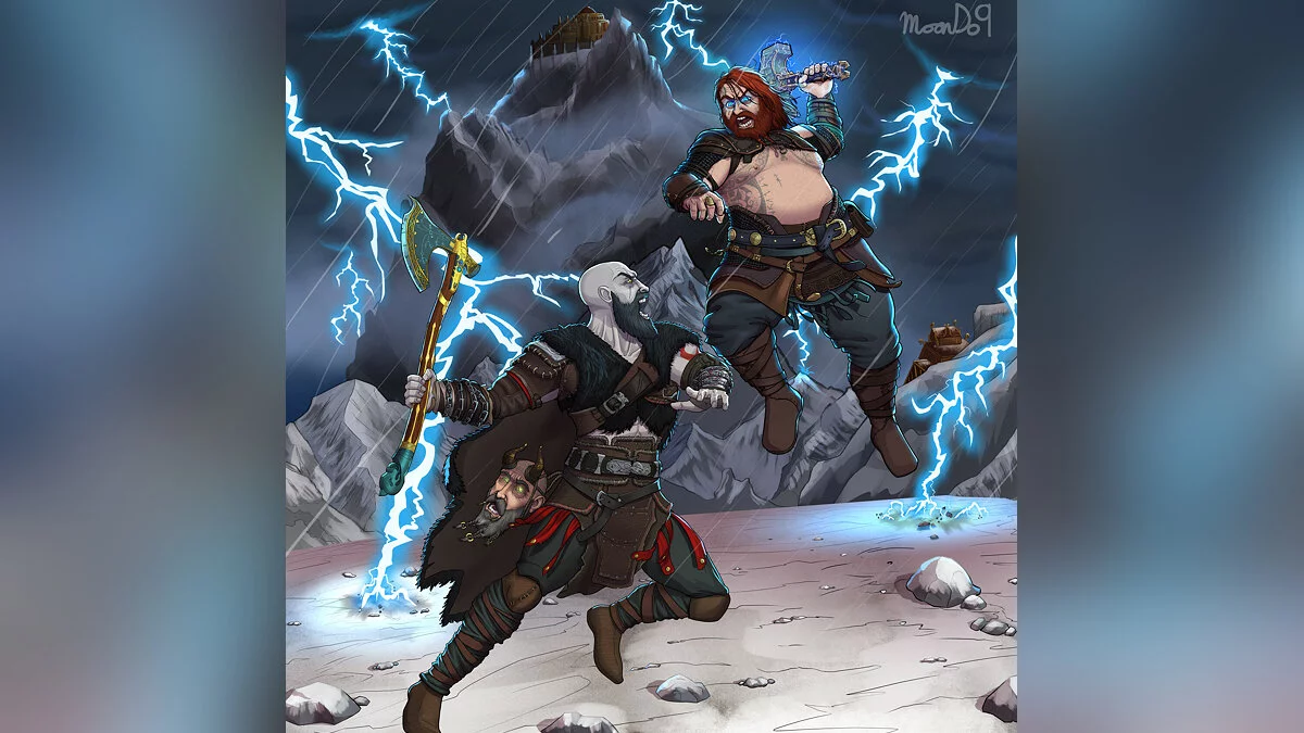 Фанат God of War и по совместительству художник с ником m8ndo9 опубликовал арт, на котором показал битву двух могущественных богов — Кратоса против Тора.