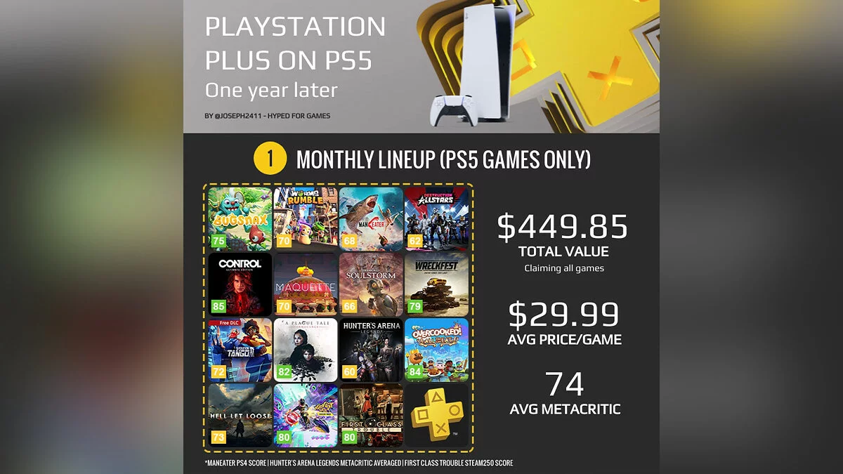 Как оказалось, за год подписчики платного сервиса получили 15 проекта для PS5, которые вместе стоят $450 (32 тысячи рублей) без скидок. Средняя цена одной игры — $30, средняя оценка на Metacritic — 74/100 баллов.