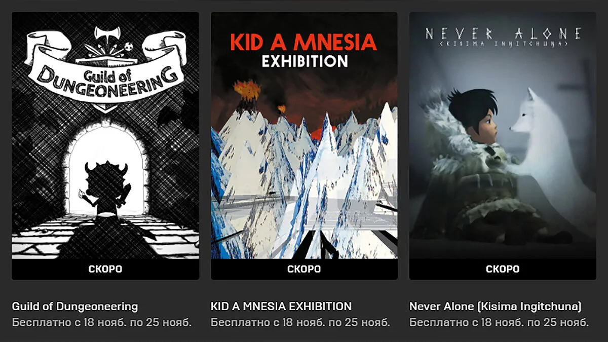 На следующей неделе в магазине бесплатно раздадут сразу три проекта: пошаговую игру про исследование подземелий Guild of Dungeoneering, KID A MNESIA EXHIBITION и атмосферный платформер-головоломку Never Alone.