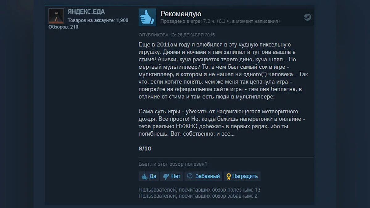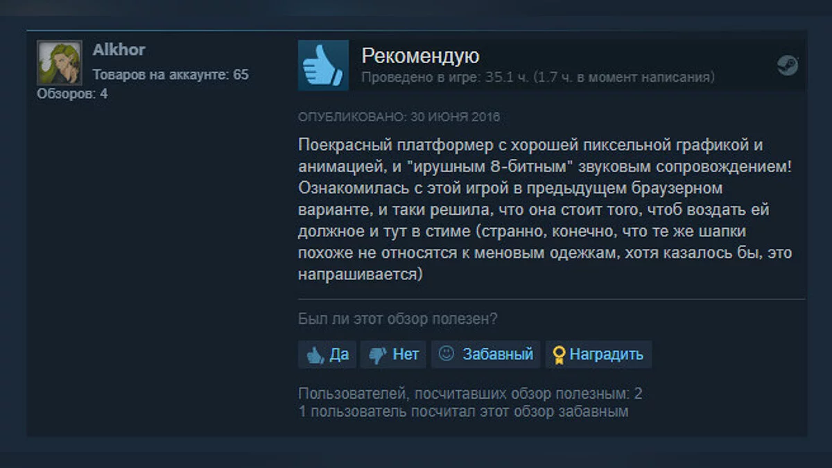 Отметим, что игру весьма хорошо оценили в Steam. Там средняя оценки составляет 95%, а за последние 30 дней — 100%.