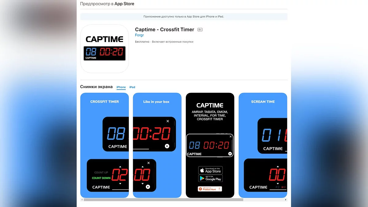 - Captime — Crossfit Timer — приложение-таймер для спортсменов (загрузить бесплатно).