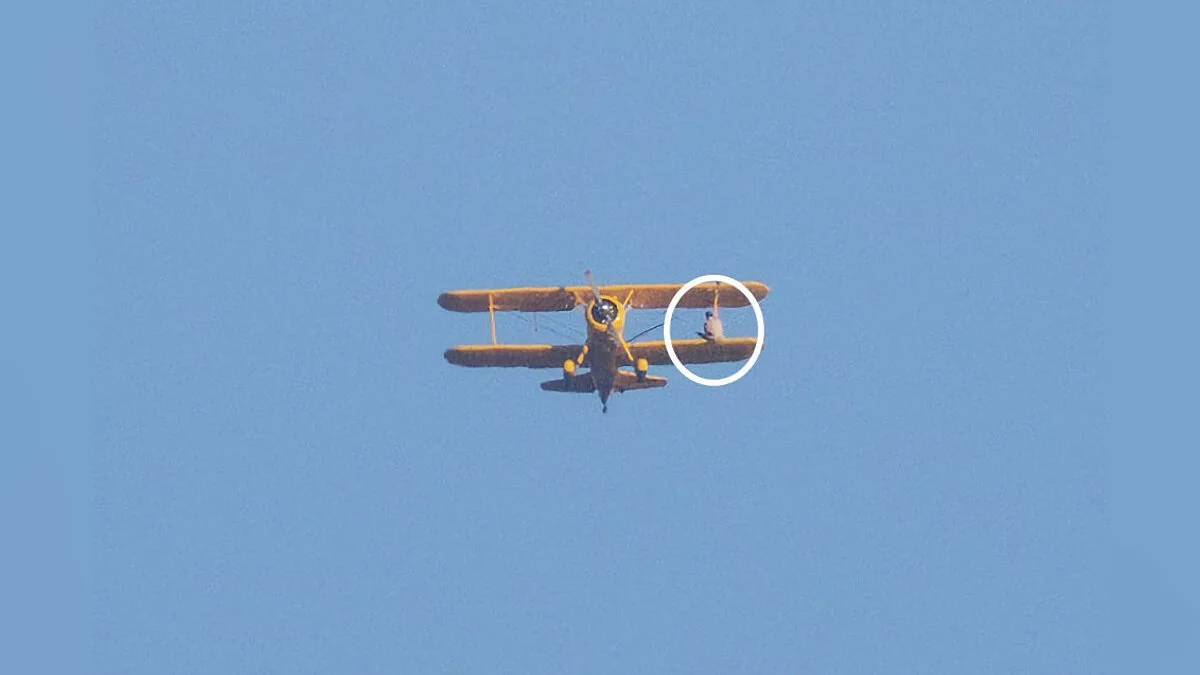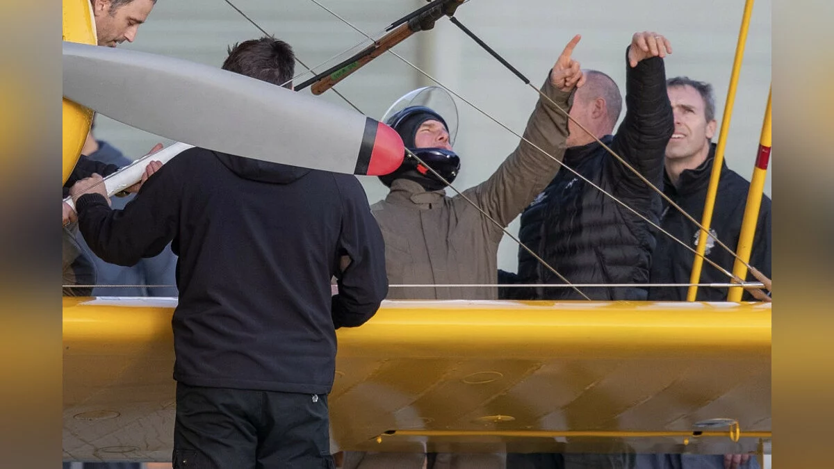 Самолет Круза взлетел примерно на 600 метров. После этого он вылез из кабины, залез на крыло биплана и свесился вниз со страховкой. Если вам этого мало, то после этого пилот перевернул самолет, оставив Тома сидеть прямо на крыле, а потом сделал мертвую петлю. Только после этого Круз вернулся в кабину.