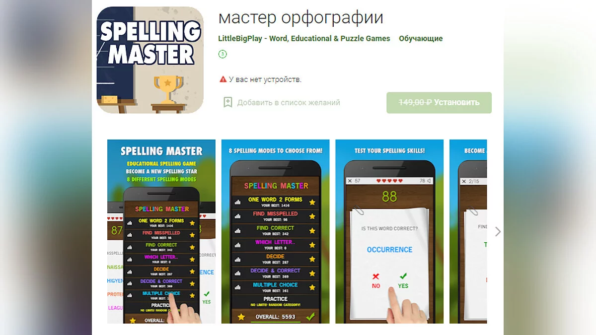 - Spelling Master PRO — образовательная игра, которая поможет развить навыки орфографии на английском языке (загрузить бесплатно);