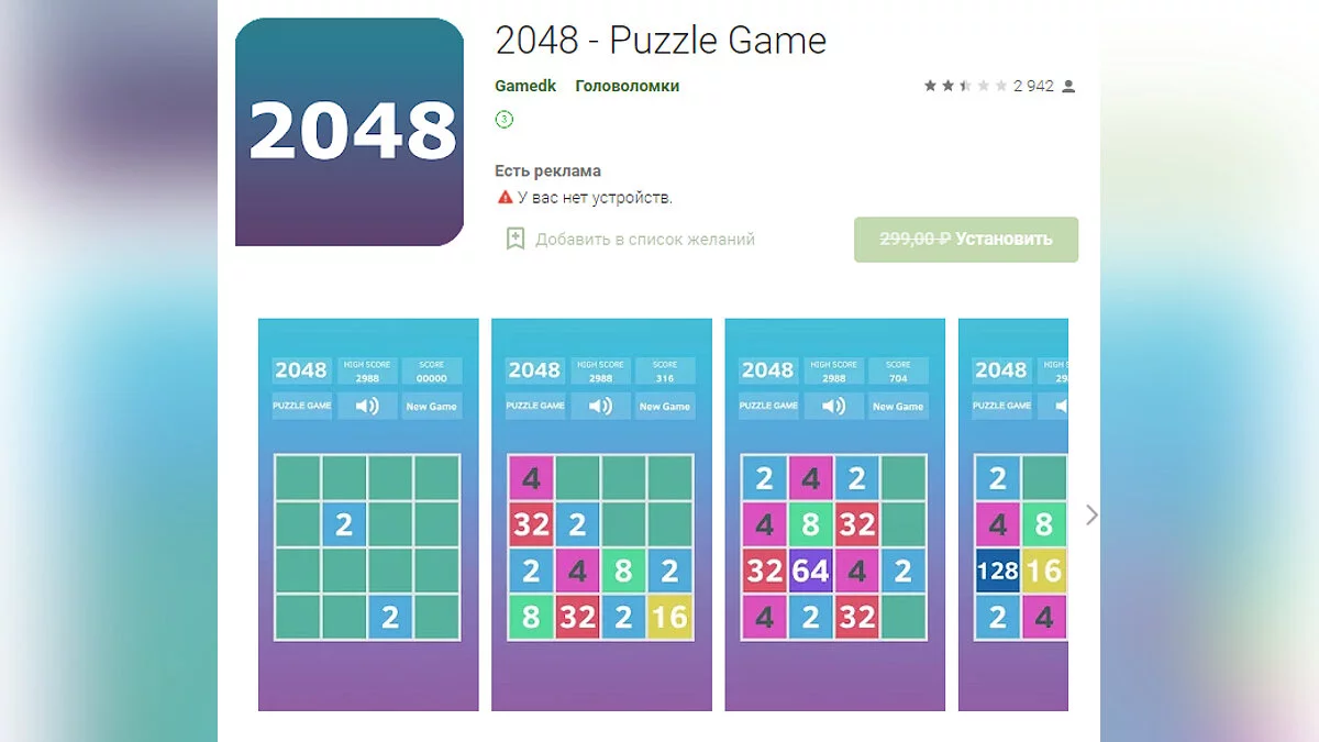 - 2048 — Puzzle Game — головоломка, в которой нужно достичь числа 2048, перемещая цифры в разные стороны (загрузить бесплатно);