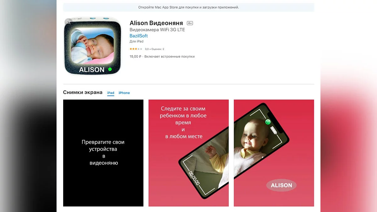 - Alison Видеоняня — программа для наблюдения за младенцем (загрузить бесплатно).