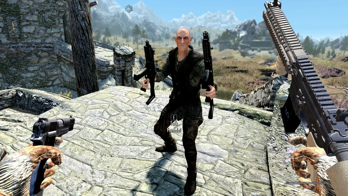 Для The Elder Scrolls 5: Skyrim вышла довольно необычная модификация под названием «Modern Weapons», которая полностью преображает геймплей ролевой игры. Мод добавляет в RPG свыше двух сотен моделей огнестрельного оружия. После его установки в арсенале главного героя появятся пистолеты, автоматы, дробовики, снайперские винтовки, грантомёт и не только.
