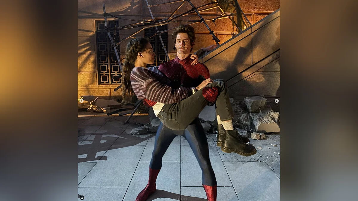 В своем Instagram актриса поделилась (признано в России экстремистской организацией) несколькими кадрами со съемок триквела. В «карусели» можно увидеть несколько трюков с участием Человека-паука (например, падение Эм Джей в финальной сцене), а также дублеров Тома Холланда (Tom Holland) и Эндрю Гарфилда (Andrew Garfield).