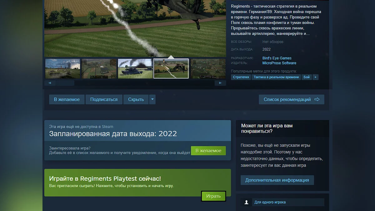 В Steam можно бесплатно опробовать новую игру про Третью мировую войну Regiments