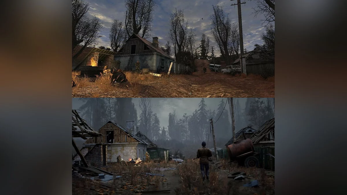 Отметим, что деревня новичнов появится в S.T.A.L.K.E.R. 2, которая также разрабатывается на пятой версии Unreal Engine. Так выглядит локация в оригинальной игре 2007 года и сиквеле, который выйдет в следующем году: