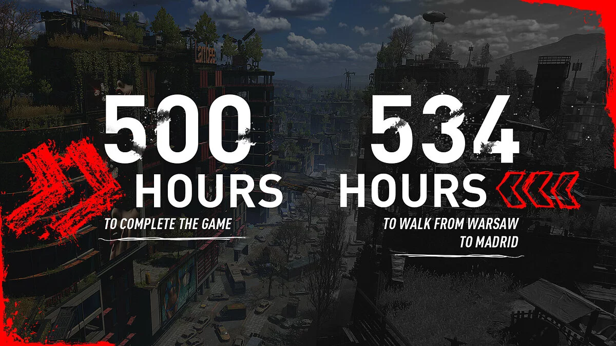 Разработчики зомби-экшена Dying Light 2 Stay Human рассказали, сколько времени потребуется на полное прохождение игры. По их словам, на это уйдёт чуть меньше времени, чем на пешую прогулку от Варшавы (столица Польши) до Мадрида (столица Испании).