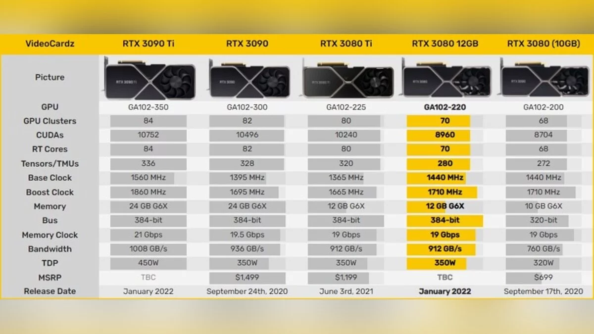 Компания NVIDIA без особой помпы и рекламы анонсировала очередную RTX-карту. Это модель RTX 3080 с 12 ГБ памяти, которая также получила и другие улучшения.