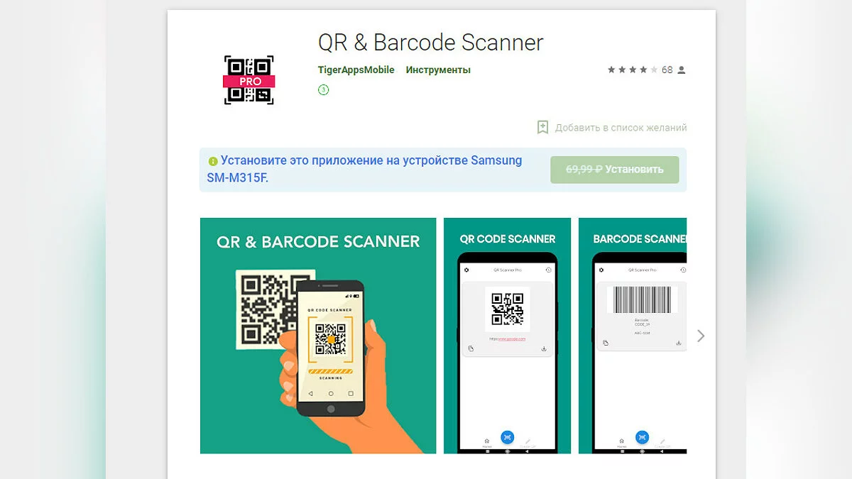 - QR & Barcode Scanner — ещё одна программа для сканирования штрих-кодов и QR-кодов (загрузить бесплатно).