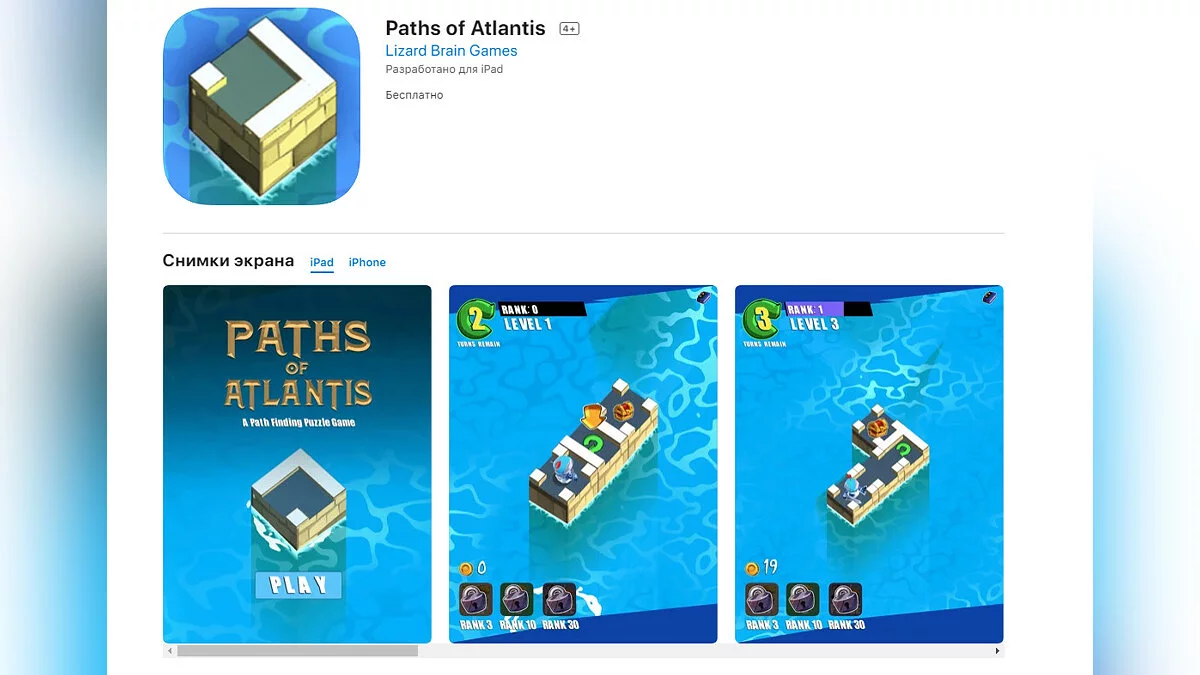 - Paths of Atlantis — казуальная головоломка про Атлантиду (загрузить бесплатно).