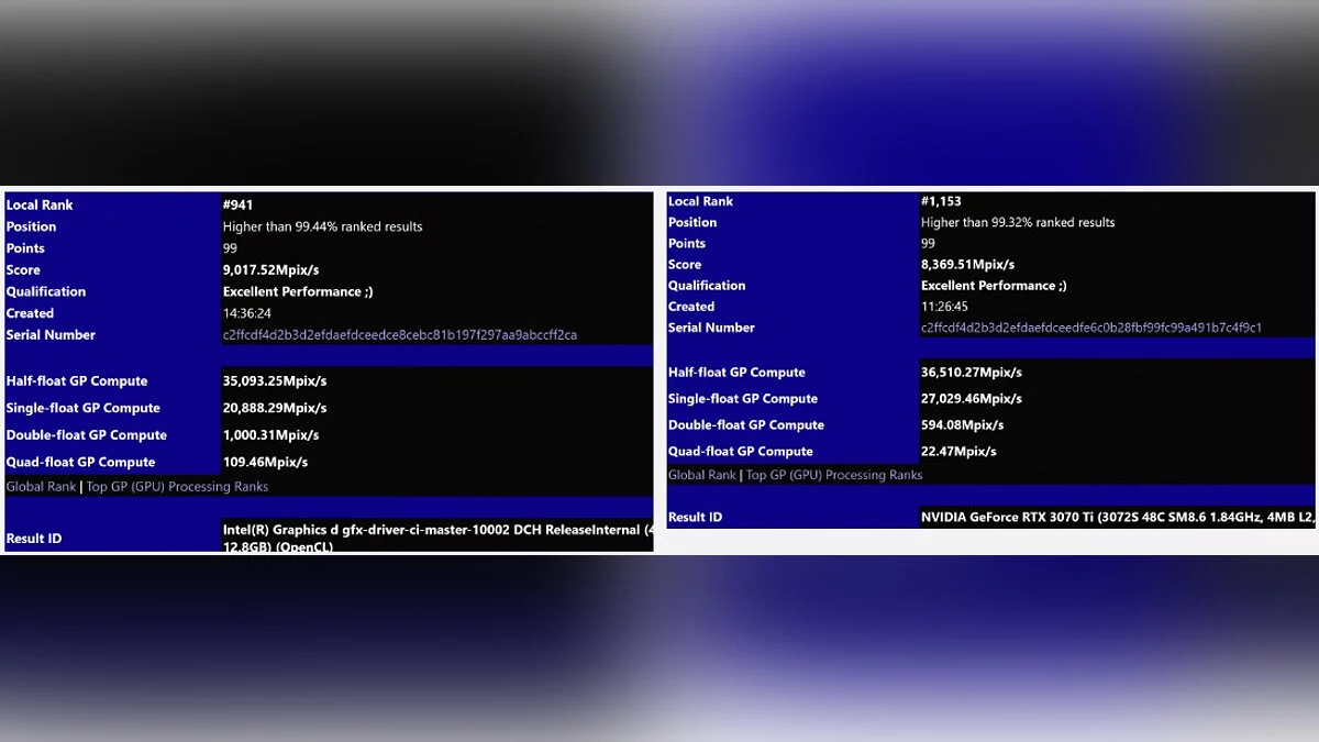 Что касается общей производительности новинка на 7,7% обгоняет GeForce RTX 3070 Ti. У новой карты Intel заявлен показатель скорости заполнения в 9017,52 МП/сек, а у конкурента — 8369,51 МП/сек. При этом по другим показателям карта уступает, а ещё по некоторым — выигрывает.