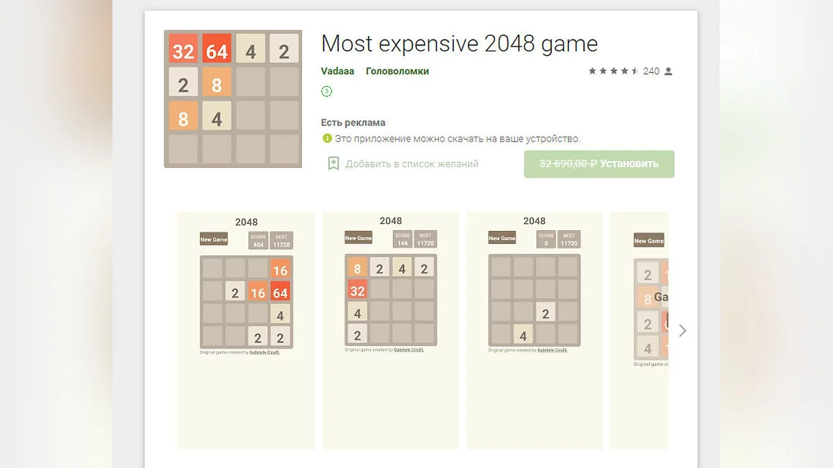 - Most expensive 2048 game — версия популярной головоломки (загрузить бесплатно).