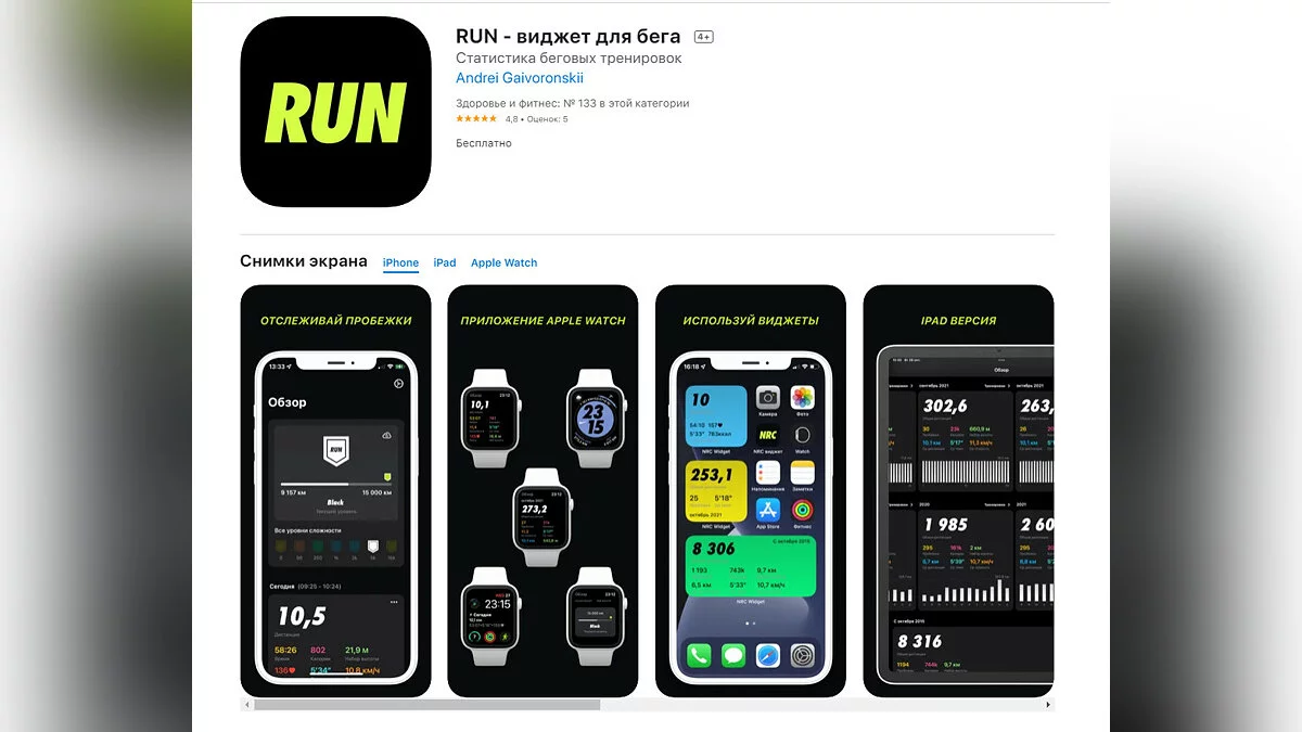 - RUN — виджет для бега — неплохой виджет для спортсменов (загрузить бесплатно).