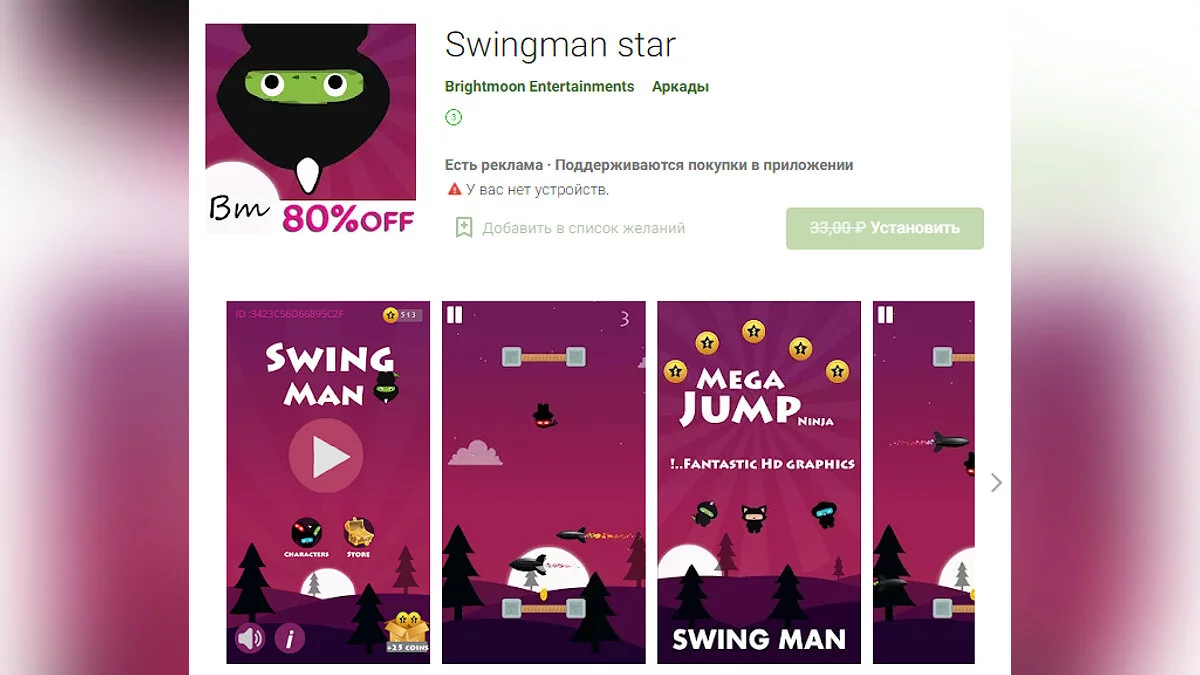 - Swingman star — аркадная игра, в которой нужно прыгать и избегать препятствий (загрузить бесплатно);