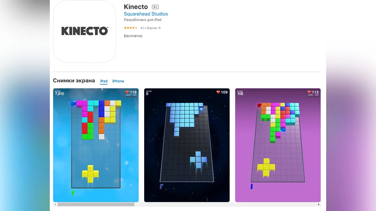 - Kinecto — головоломка в стиле «Тетриса», но с некоторыми особенностями (загрузить бесплатно);