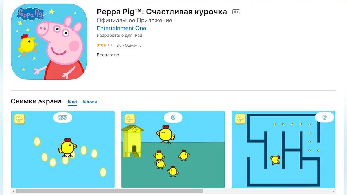- Peppa Pig: Happy Mrs Chicken — детская обучающая игра с интерактивными заданиями (загрузить бесплатно).
