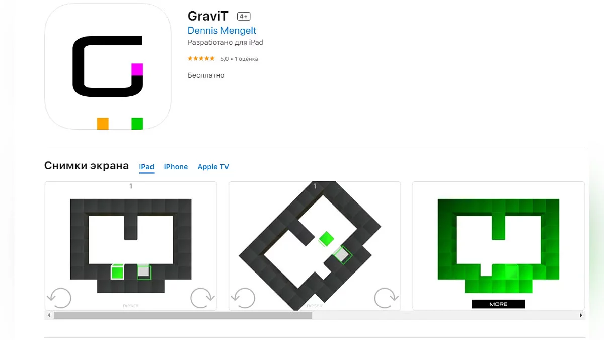 - GraviT — головоломка, в которой нужно перемещать кубы (загрузить бесплатно);