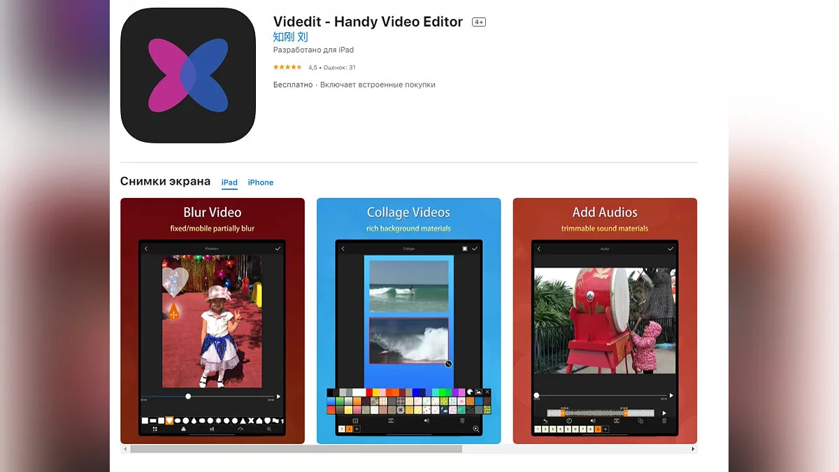 - Videdit — Handy Video Editor — продвинутый редактор видео (загрузить бесплатно);