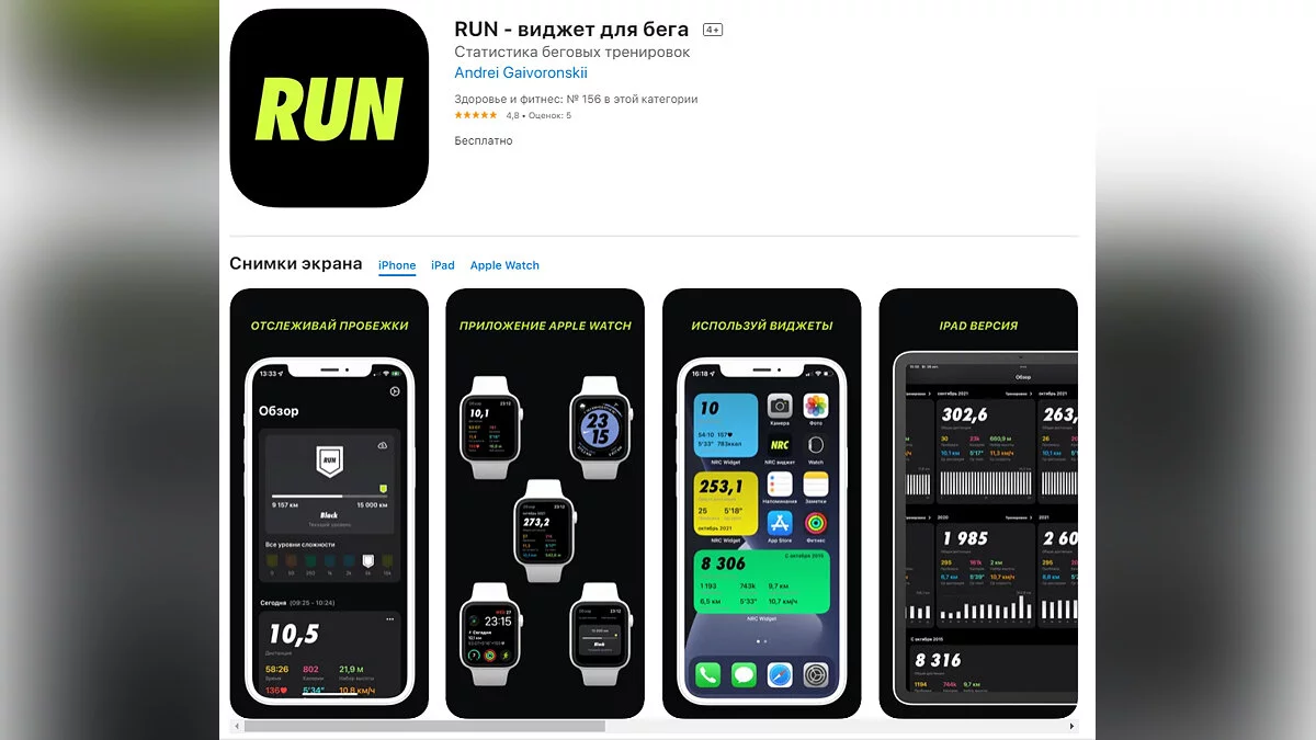 - RUN — виджет для бега с функциями для ведения статистики (загрузить бесплатно).