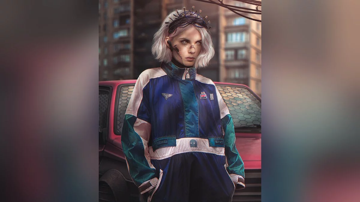 Российский художник Евгений Зубков (помните арты с сибирским Человеком-пауком и российскими Черепашками-ниндзя?) показал (признано в России экстремистской организацией) свою новую работу под названием «Царевна». Это портрет девушки из спального района в стилистике киберпанка: похожий на старые олимпийки комбинезон, венец из сетевых кабелей, специальный имплант вместо наушников.