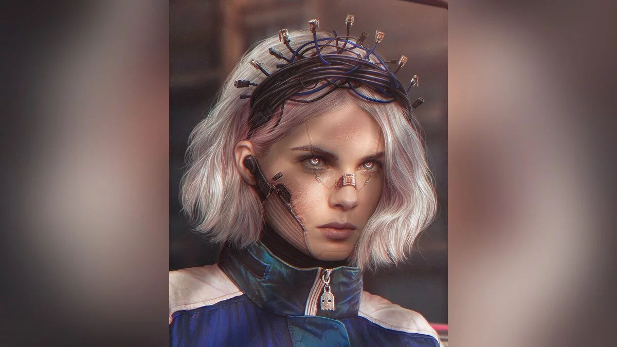 Русский киберпанк: художник показал портрет «Царевны» в венце из сетевых кабелей. Арт засветился в центре Токио
