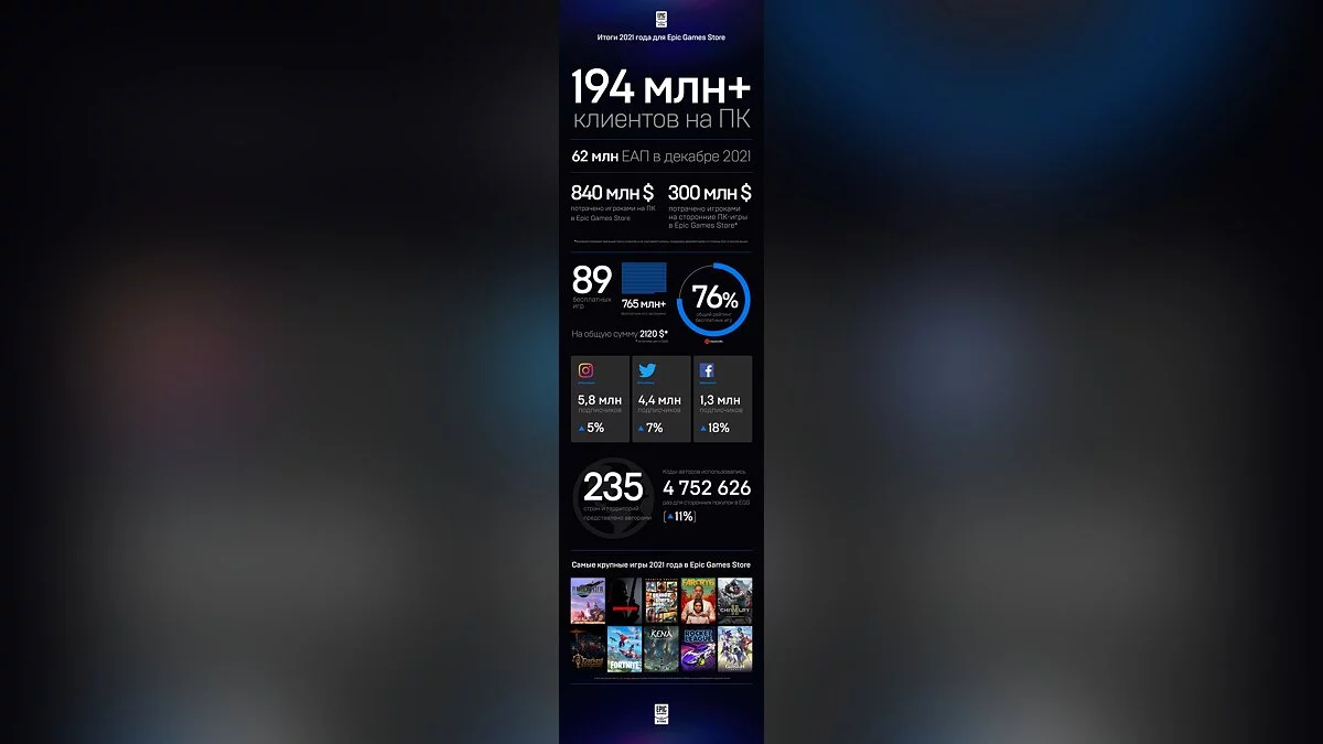 Что касается бесплатных раздач, то за год компания подарила 89 игр суммарной стоимостью 2120 долларов (165 тысяч рублей). Всего разобрали 765 миллионов бесплатных копий. Если верить Epic Games, благодаря раздачам 76 игр побили собственный рекорд по онлайну.