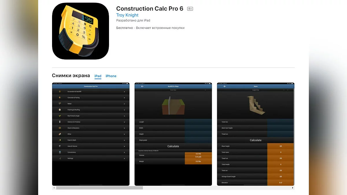 - Construction Calc Pro 6 — продвинутый калькулятор (загрузить бесплатно).