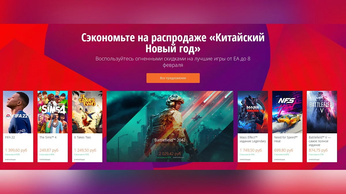 В Origin началась новая большая распродажа, посвящённая китайскому Новому году. Скидку получили игры серий Battlefield, NFS, Dead Space, Star Wars, Dragon Age, Mass Effect, Mirror's Edge, Crysis и не только. Акция закончится 8 февраля.