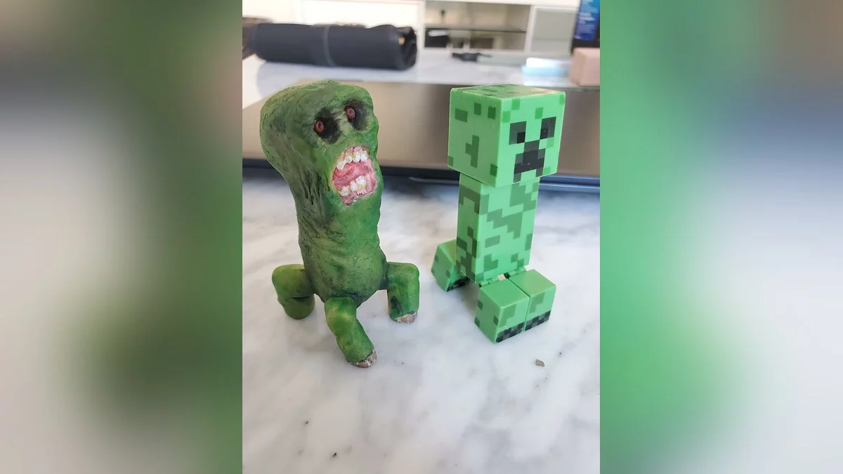 Пользователь Reddit с ником spaghetti-memeballs опубликовал фото созданной им с помощью полимерной глины фигурки крипера из Minecraft. Для разнообразия автор сделал сразу две версии этого моба — игровую и реалистичную.
