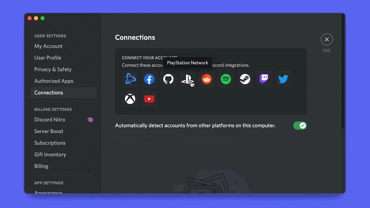 Для этого необходимо открыть настройки в Discord, выбрать вкладку «Интеграции», среди учетных записей выбрать PlayStation Network и авторизоваться. Теперь запущенная на консоли игра будет отображаться в статусе мессенджера.