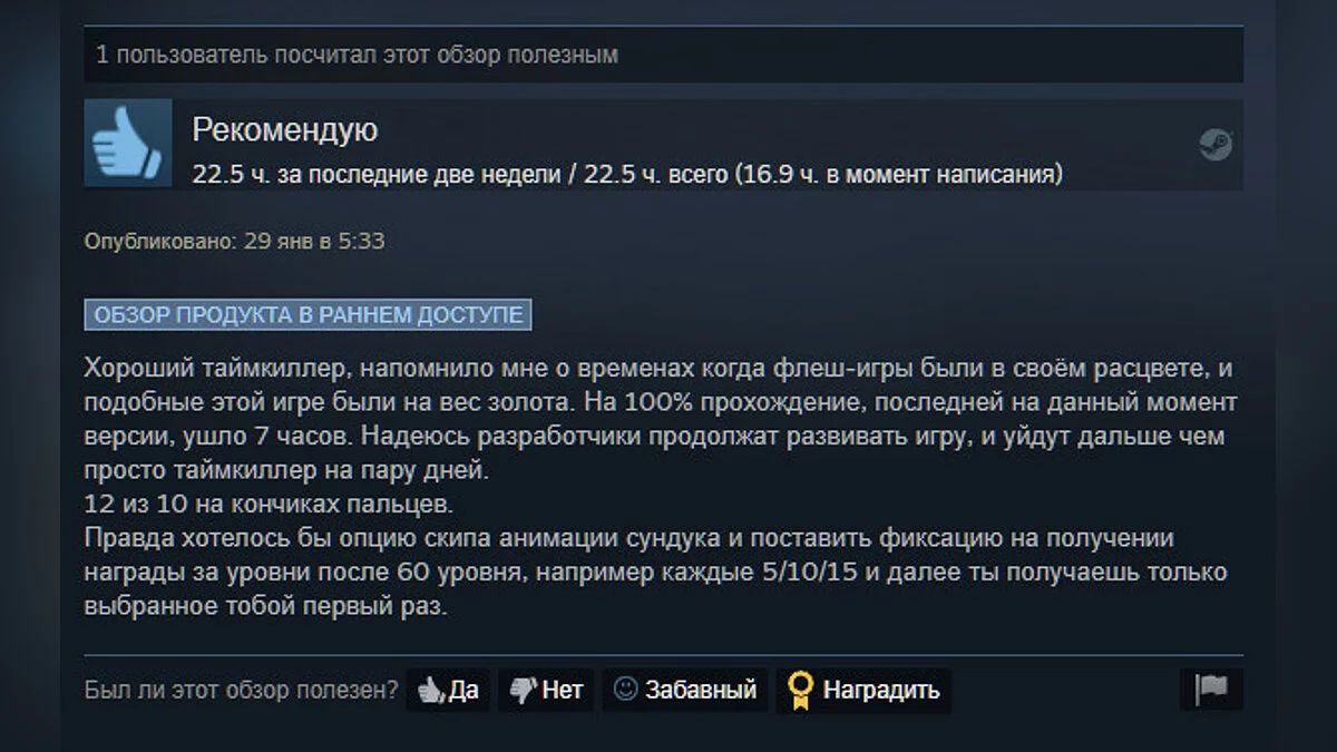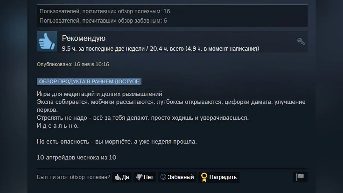 Хотя Vampire Survivors находится в раннем доступе, на момент написания заметки у нее 99% положительных отзывов в Steam. По словам игроков, сейчас в игре не так много контента, но и без него она способна затянуть на несколько дней.