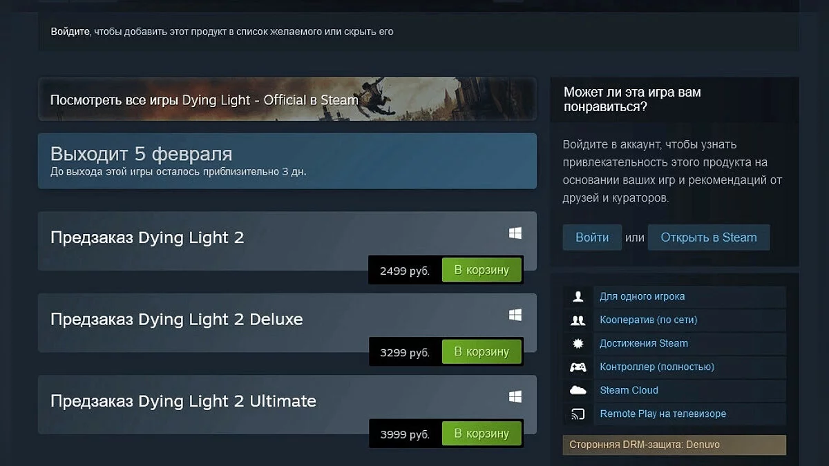 Вчера стало известно, что Dying Light 2 получит защиту Denuvo — на это указывает плашка в Steam. Это сразу же вызвало негативную реакцию многих игроков.