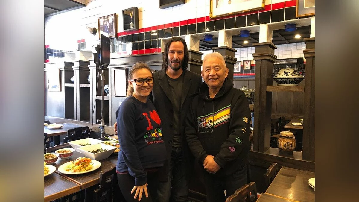 Заведение называется House of Nanking и находится в Сан-Франциско. На фотографии вместе с Киану стоит совладелица ресторана Кэти Фэнг (Kathy Fang).