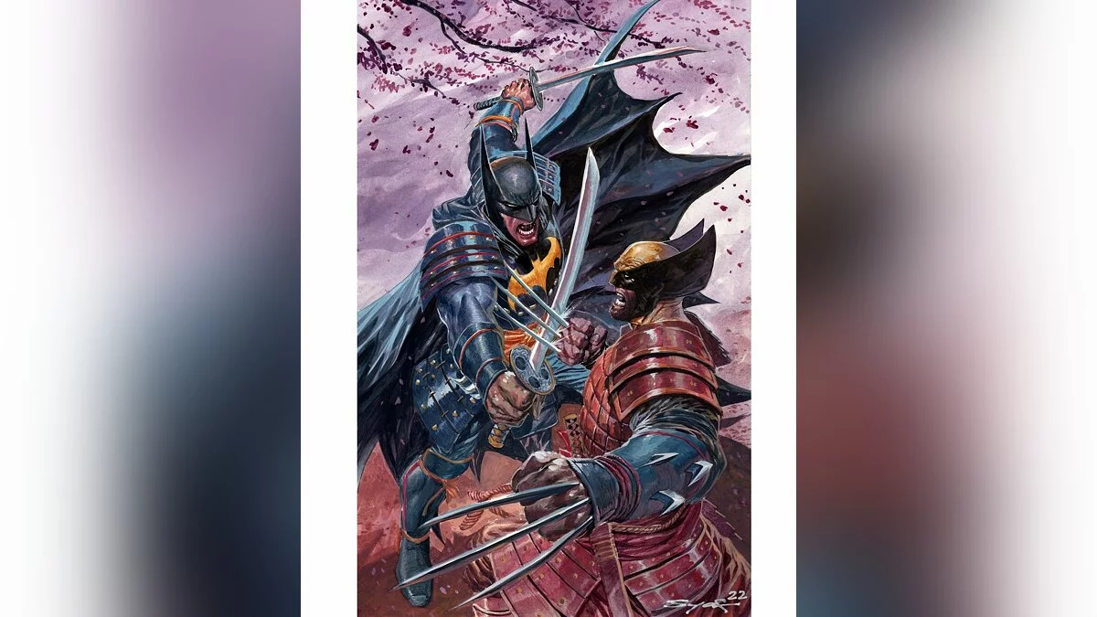 На рисунке Бэтмен выступает в качестве самурая, вооруженного двумя катанами. Росомаха в качестве оружия использует адамантиевые когти.