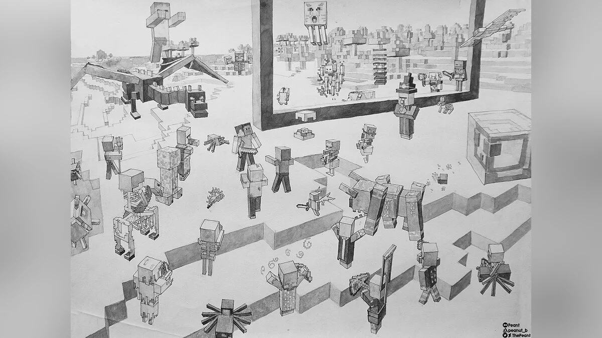 Фанат объединил на одном арте всех 37 враждебных мобов из Minecraft. На это у него ушло 100 часов