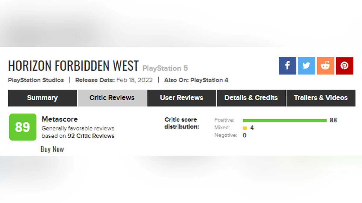 На момент написания новости Horizon Forbidden West имеет в среднем 89 баллов на Metacritic.