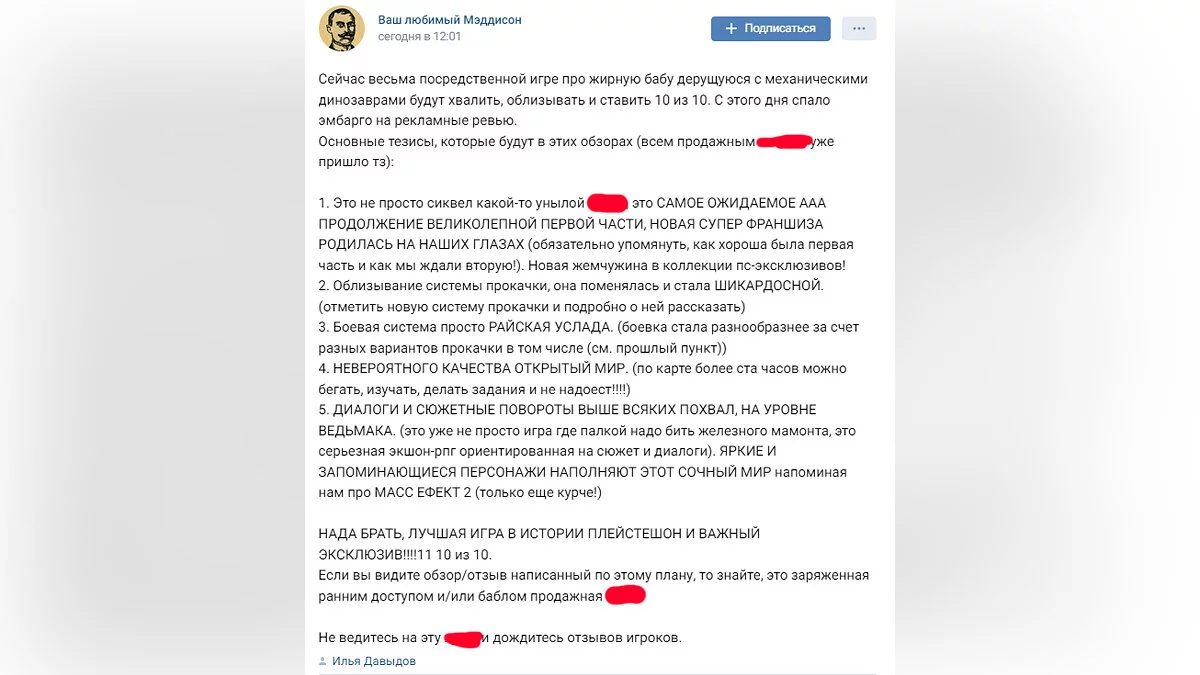 Российский блогер и стример Илья «Мэддисон» Давыдов высказал свое мнение о Horizon Forbidden West, которая сегодня начала получать первые оценки от прессы. Судя по посту, он считает эту игру «посредственной». Кроме того, Мэддисон также обвинил в продажности журналистов, которые хвалят этот проект.