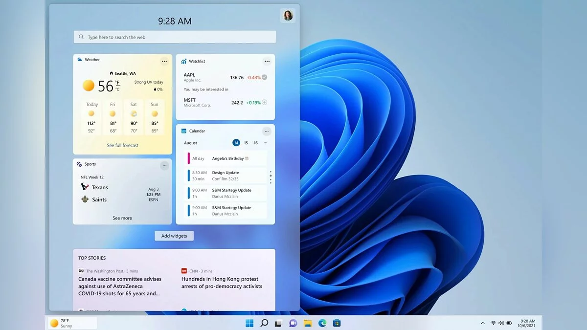 Помимо этого, обновилась панель задач. Теперь на ней виден виджет погоды и новостей, а время и дата показываются на всех мониторах. Переработке подверглись некоторые стандартные приложения, в том числе «Блокнот», поддерживающий теперь тёмную тему и многоэтапную отмену. Из других изменений отметим новые версии Windows Media Player и Groove Music.